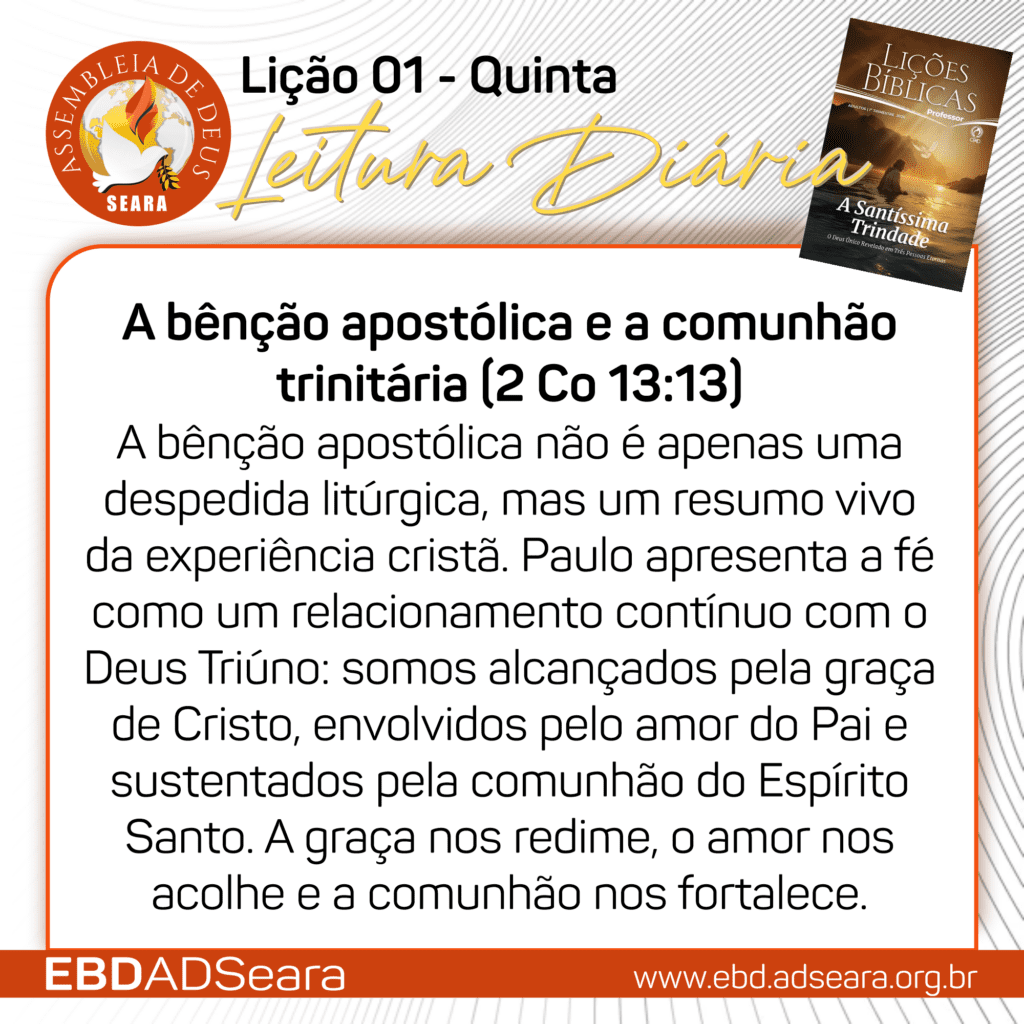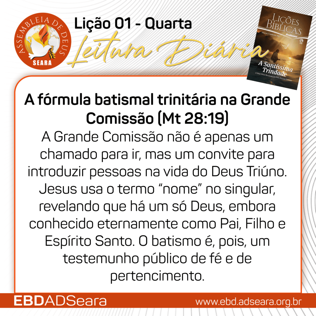 Disponíveis os cards da semana da Lição 01 – O Mistério da Santíssima Trindade.