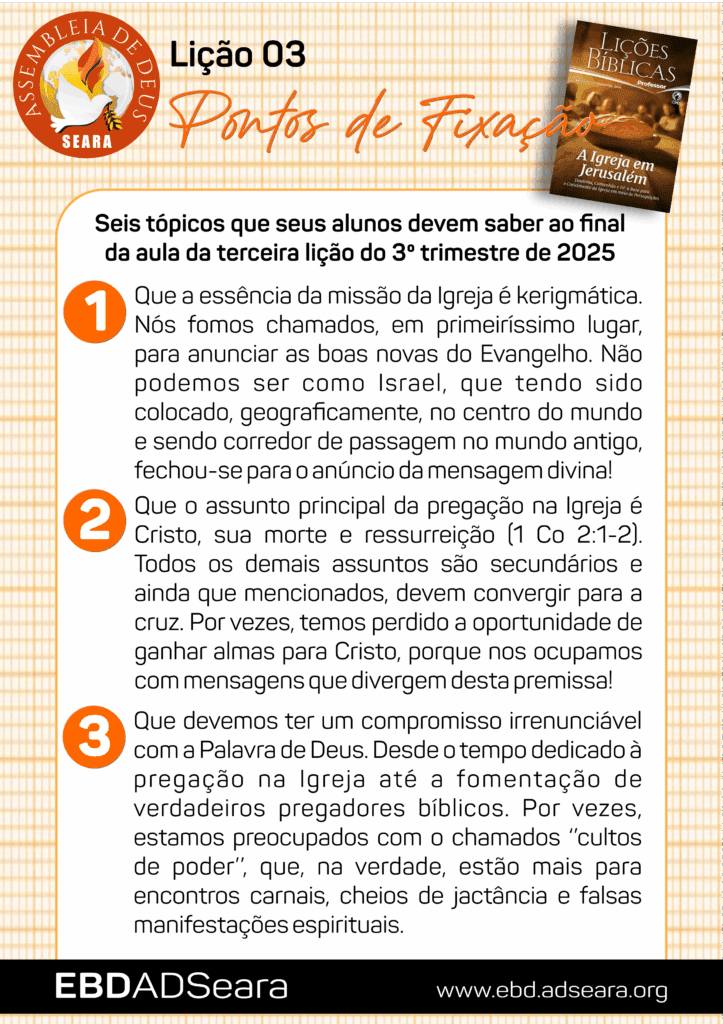 Seis tópicos que seus alunos devem saber ao final da aula da terceira lição do 3º trimestre de 2025