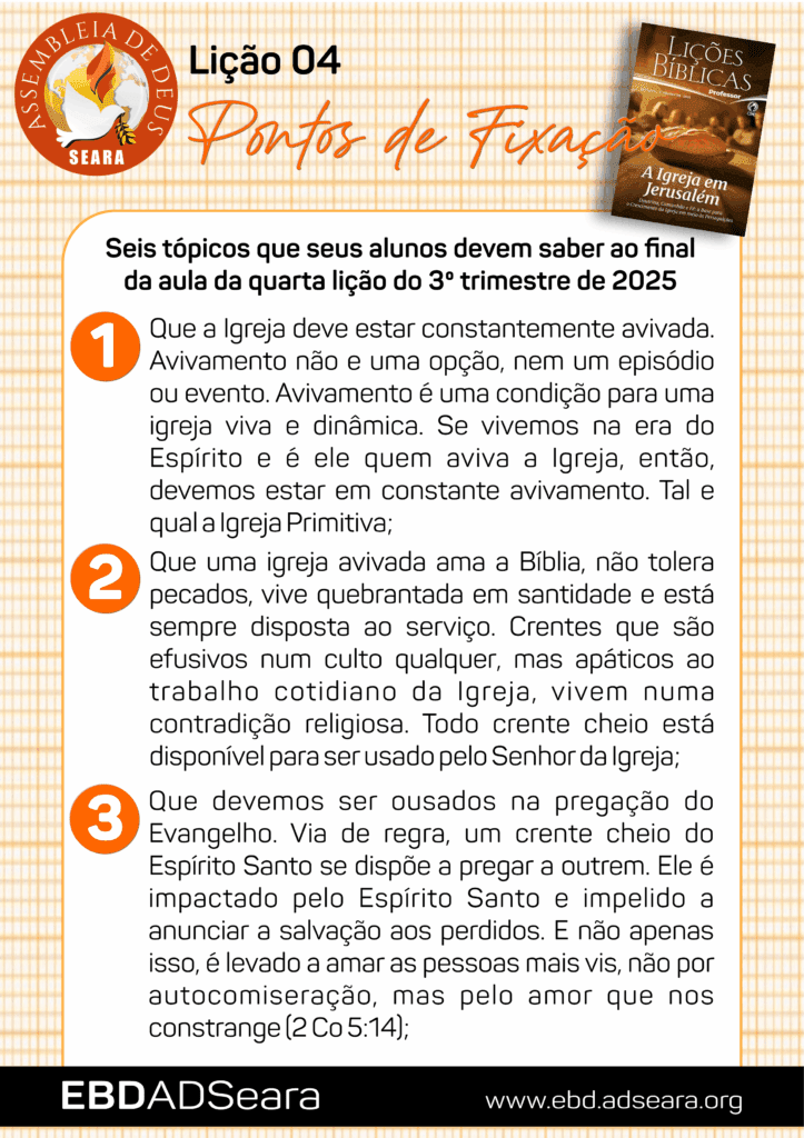 Seis pontos de fixação para seus alunos na lição 04: